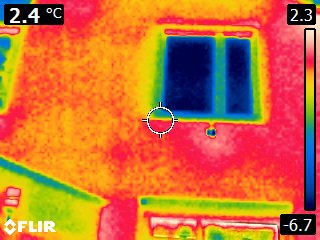De warmtebeeldcamera van de energieadviseur geeft met kleuren aan of er warmte verdwijnt via ramen, gevel en/of het dak van een woning.